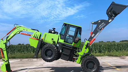 連接復(fù)合動(dòng)作一拖二操作手柄,簡介易操作由于它具有共同的結(jié)構(gòu),前端是裝載設(shè)備,后端為發(fā)掘設(shè)備。在施工時(shí),操作手只需求翻滾一下座椅,就可以結(jié)束從裝載機(jī)到發(fā)掘機(jī)的改動(dòng)